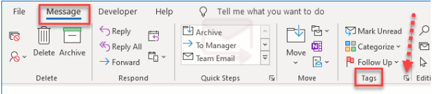 Step 4. Click on the message tab>> Go to the tags section>> Click the anchor.